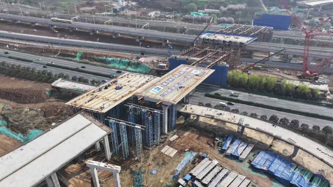 该项目由陕西交控市政路桥集团牵头,陕西省交通规划设计研究院规划设计,陕西高速机械化公司、陕西路桥集团具体实施。3月25日,西安东站高架快速路系统及节点立交工程取得关键进展——新兴南路主线桥跨绕城高速与跨铁路钢箱梁同步顶推施工顺利完成。