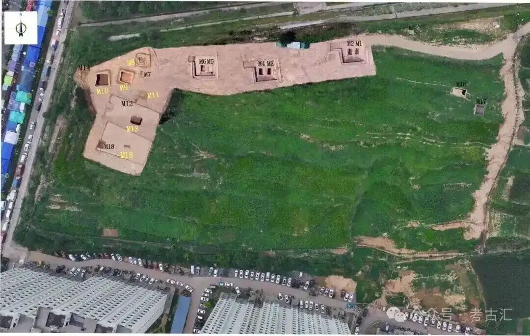 ▲钟村墓地墓葬分布图(黄色墓号为夏商墓葬)。图片来源:考古汇微信公众号
