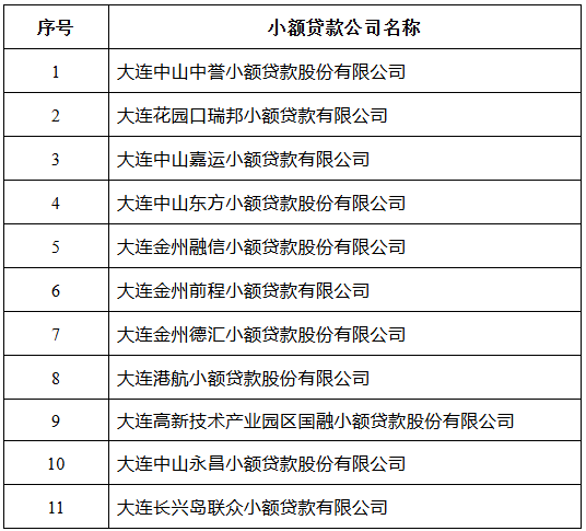 根据《关于小额贷款公司试点的指导意见》(银监发〔2008〕23号)第二条第五款、《小额贷款公司监督管理暂行办法》(金规〔2024〕26号)第四十一条、《大连市小额贷款公司监督管理办法》(大政发〔2017〕23号)第九条、四十二条以及《大连市小额贷款公司分类监管办法(试行)》(大金局发〔2017〕122号)第十七条的有关规定,大连市地方金融管理局拟终止以下小额贷款公司业务经营资格。