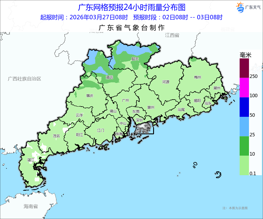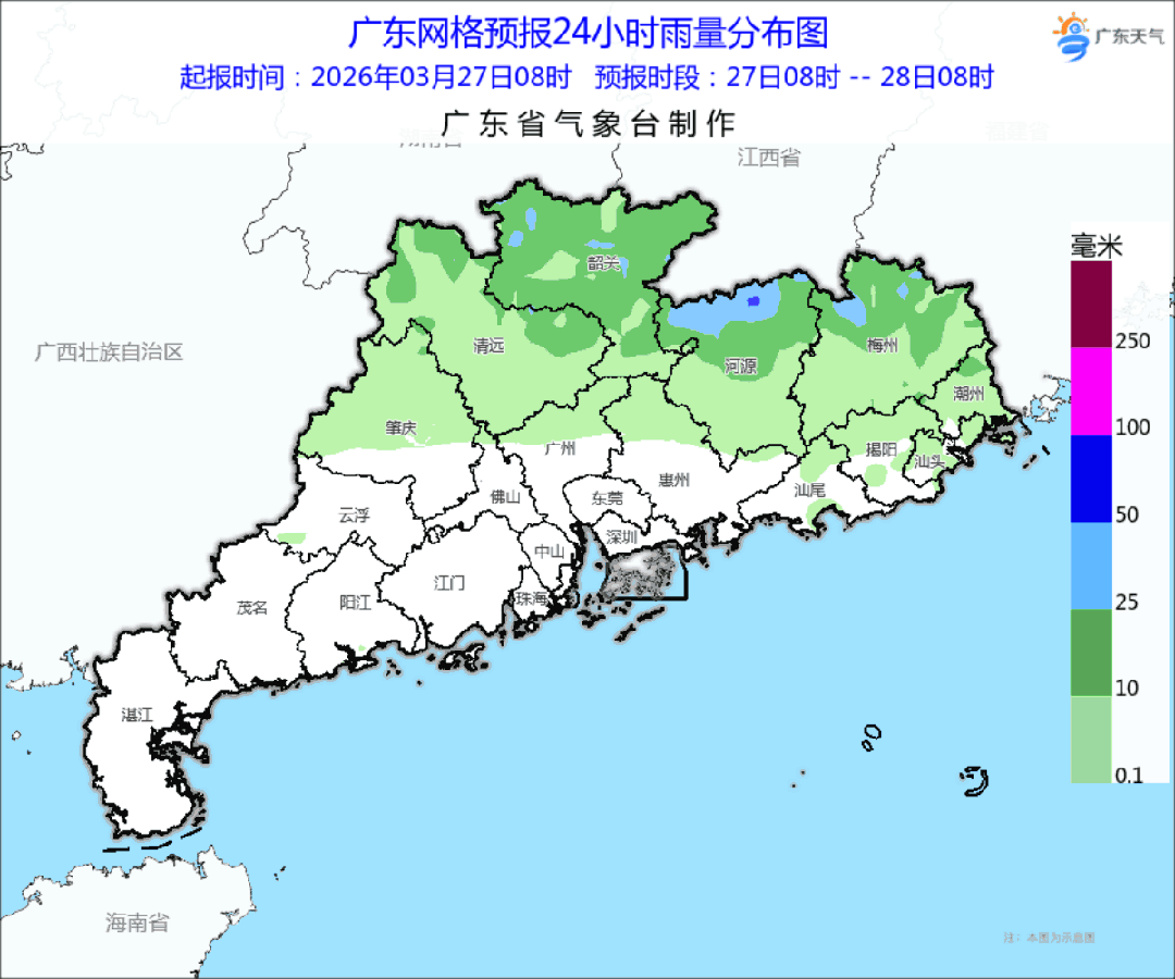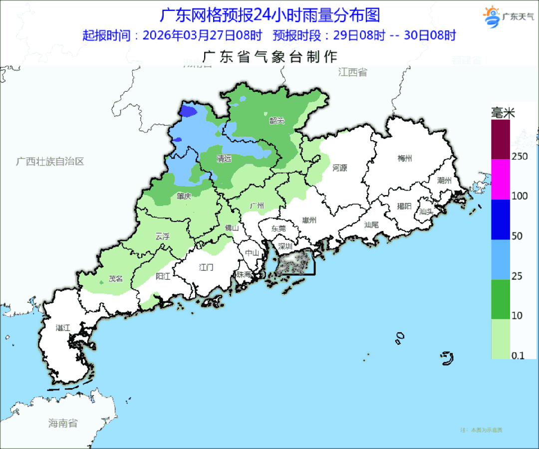 具体来看,28日,韶关、清远、肇庆北部、河源北部和梅州北部市县有中(雷)雨局部大雨或暴雨,其余市县多云有阵雨。