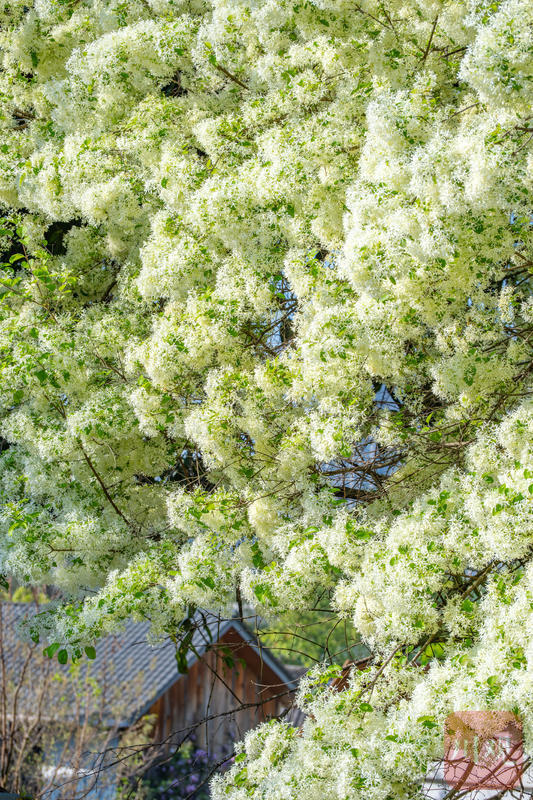 2026年3月26日,成都锦江区三圣花乡图南院,阳光洒落枝头,洁白流苏花熠熠生辉,淡雅清香弥漫整个庭院。