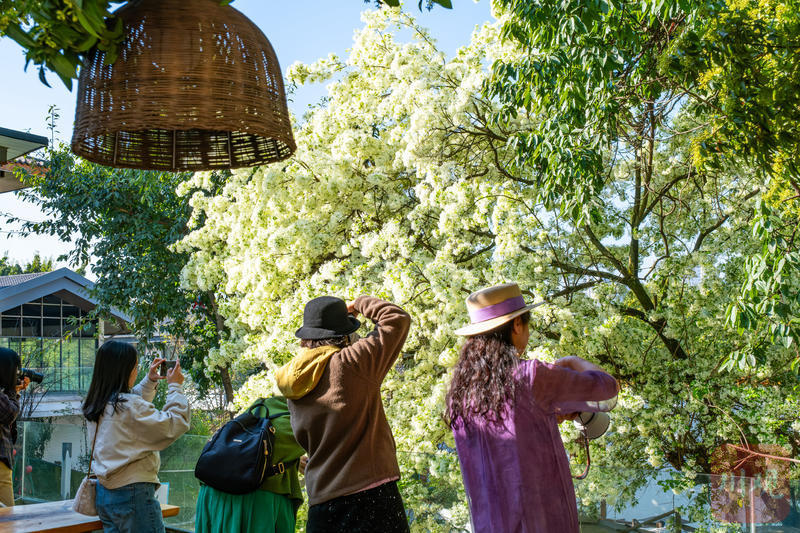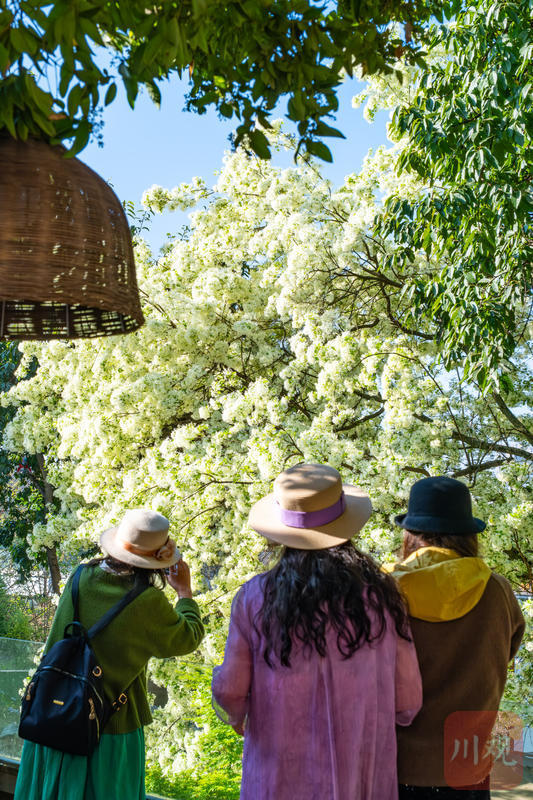 答案就在三圣花乡景区内的图南院。这个藏在花乡深处的院落,因这棵流苏树的绽放,近日迎来一波“赏花潮”。据了解,流苏树花期较短,通常只有一周左右,眼下正是最佳观赏期,想一睹“四月雪”盛景的市民,不妨趁晴好天气抓紧前往。建议上午或傍晚光线柔和时拍摄,身着浅色衣物与白花更相配,出片率更高。