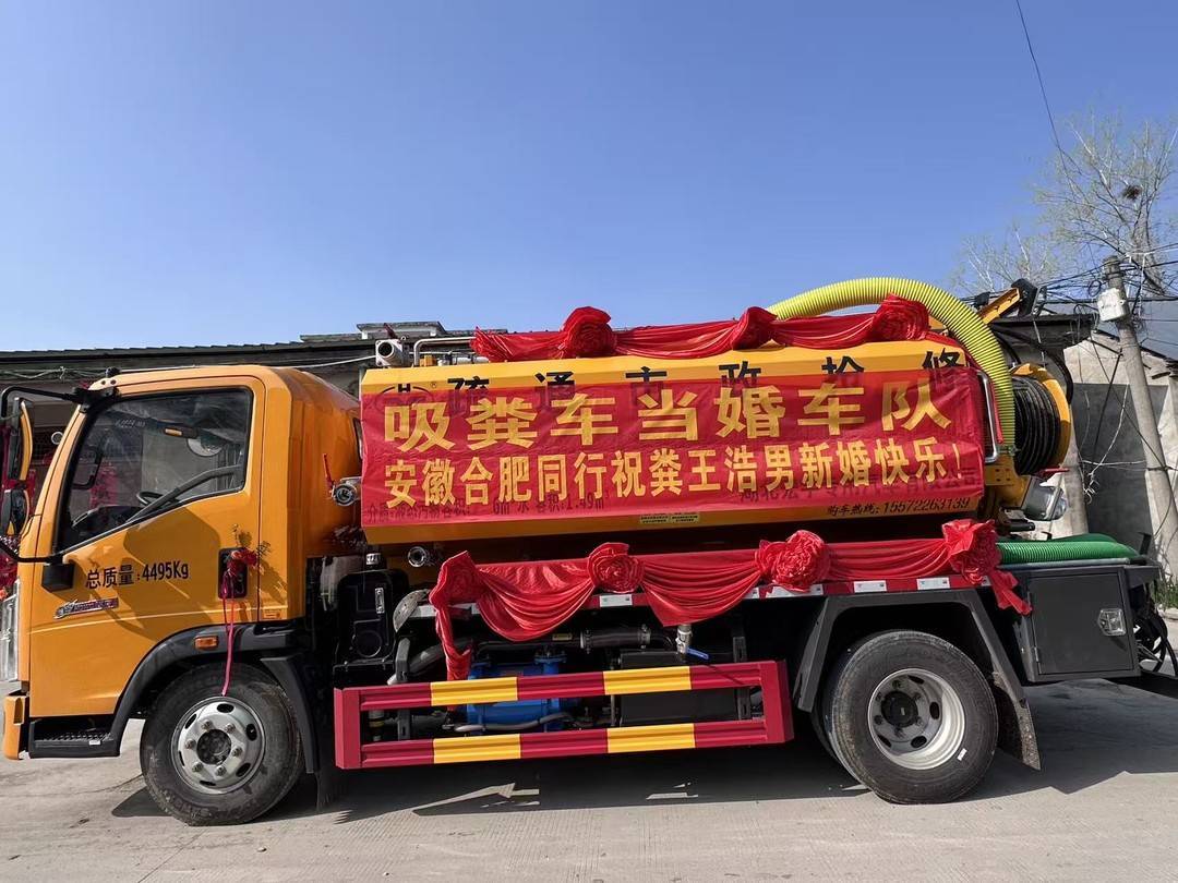 这辆安徽合肥的吸粪车作为婚车队的头车。受访者供图