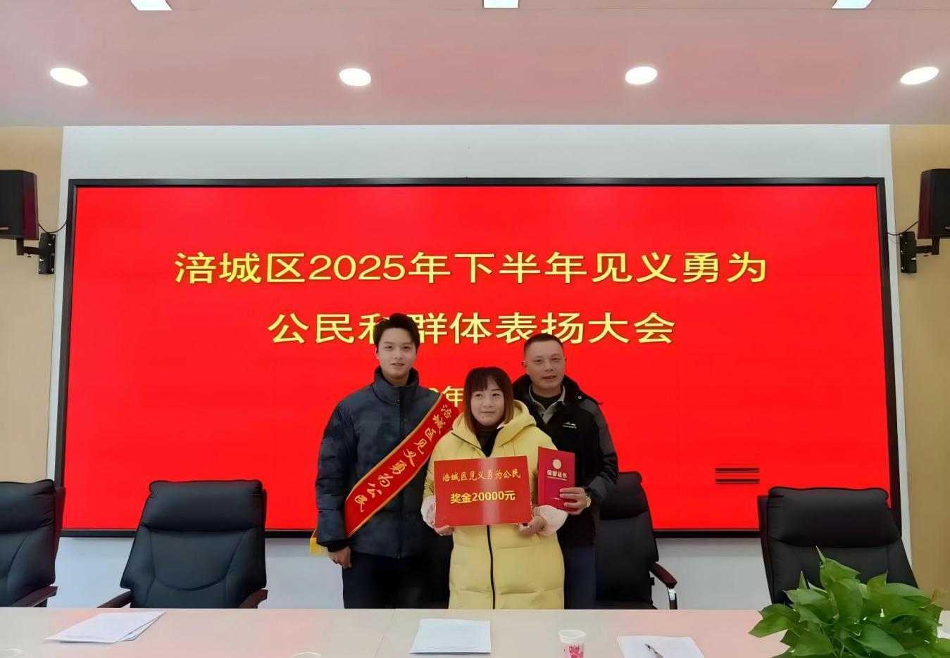 近日,外卖骑手李龙获得涪城区人民政府“见义勇为公民”表彰。
