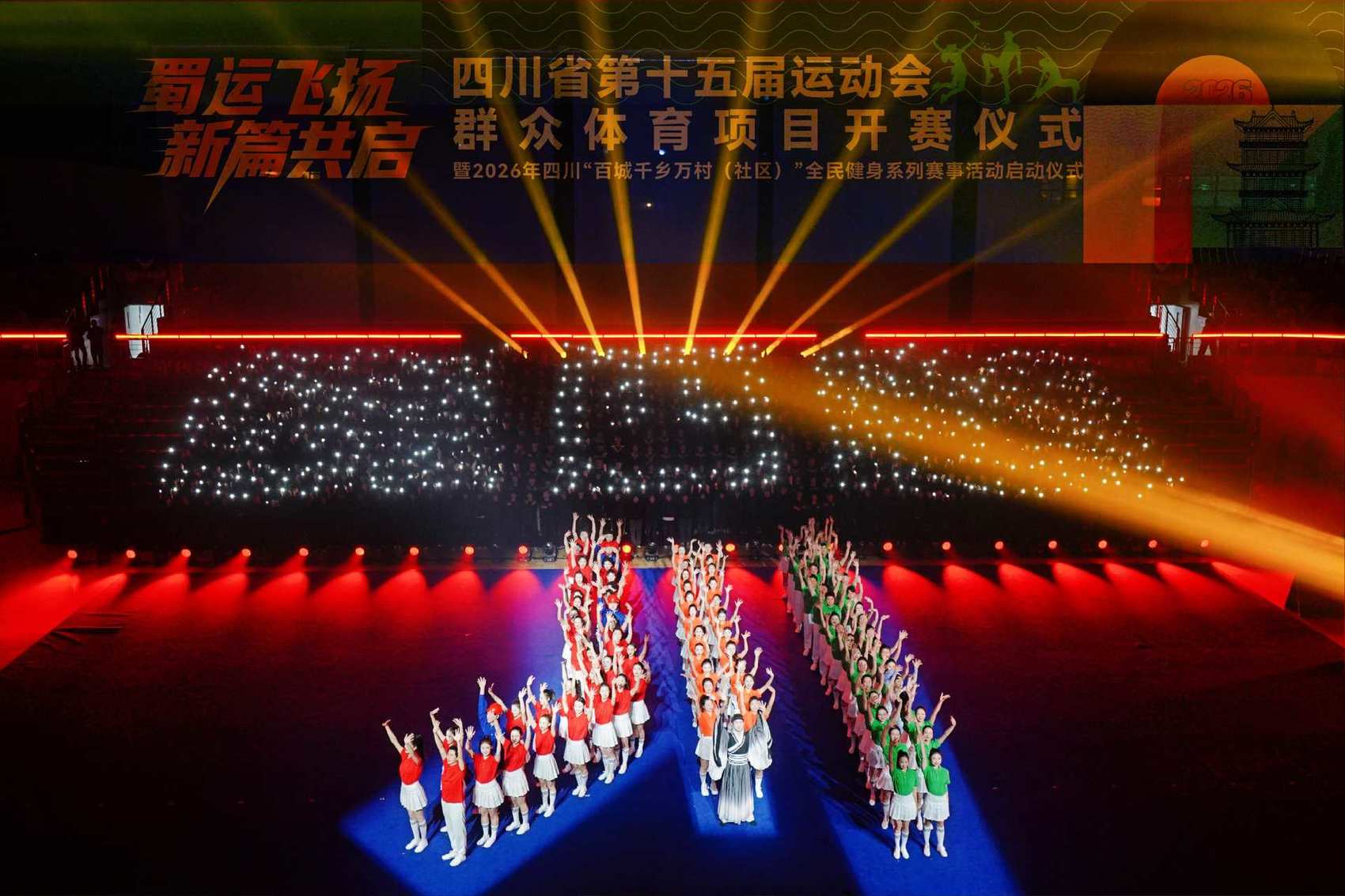3月28日,四川省第十五届运动会群众体育项目开赛仪式暨2026年四川“百城千乡万村(社区)”全民健身系列赛事活动启动仪式在宜宾市高县翰笙文化体育艺术中心拉开帷幕。这场以“蜀运飞扬 新篇共启”为主题的体育盛会,点燃了巴蜀大地全民健身的热情。