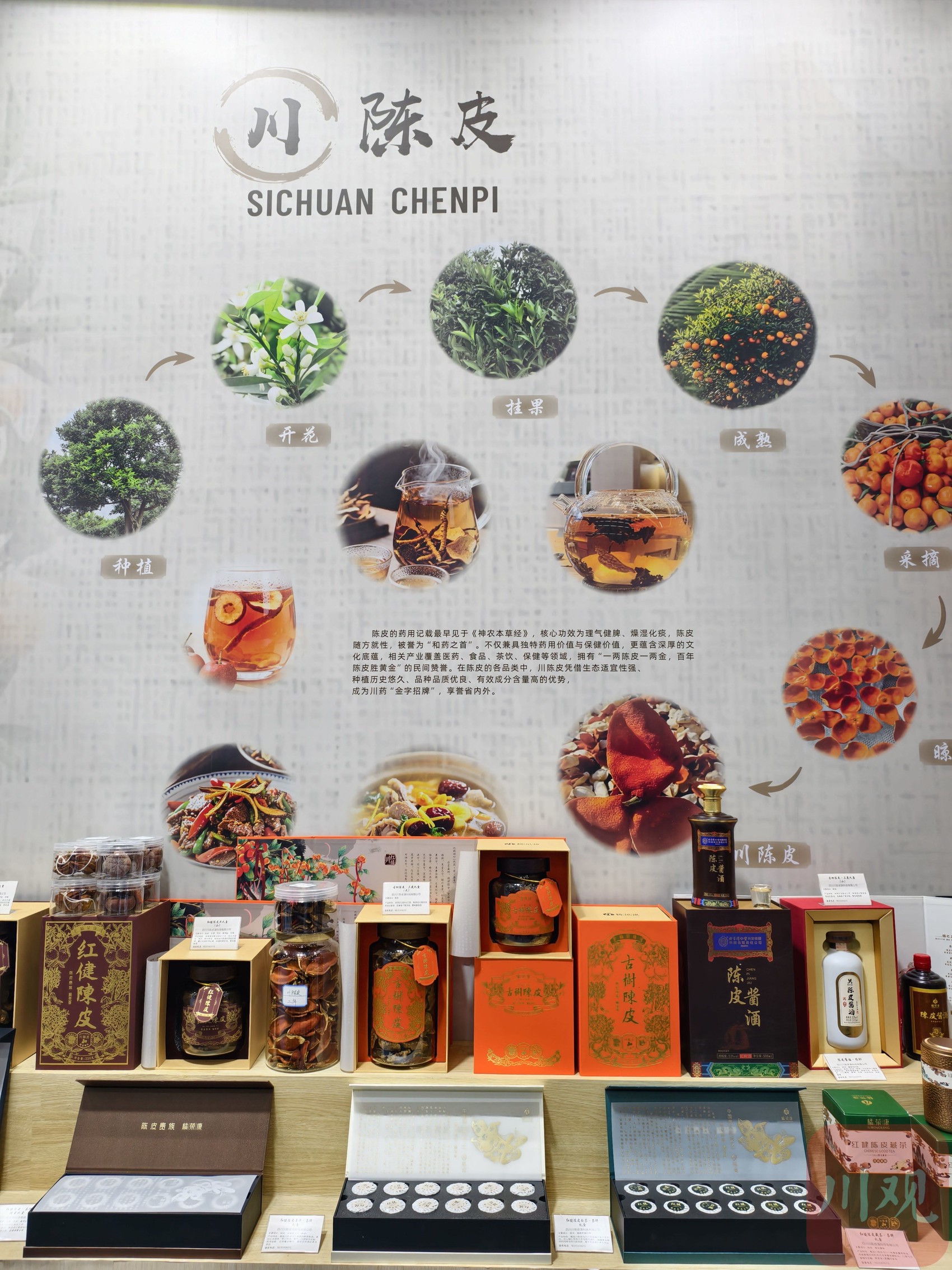 这次会议之际,正值第114届糖酒会举行。在成都世纪城新国际会展中心,“药食同源 健康生活”主题展馆里,川陈皮系列、中药养生糕点、鲜药冻干零食吸引年轻人关注。