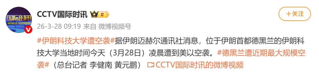 据伊朗迈赫尔通讯社消息,位于伊朗首都德黑兰的伊朗科技大学当地时间今天(3月28日)凌晨遭到美以空袭。