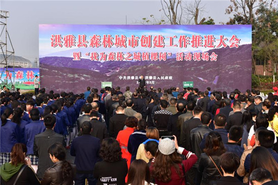 3月14日,洪雅县2018年森林城市创建工作推进大会暨“我为森林之城植棵树”活动举行。县领导,县级各单位、部门主要负责人及班子成员、洪川镇社区代表、学生代表、志愿者代表共计1000余人参加活动。