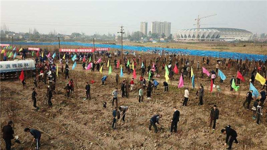 据统计,活动当天,共栽植桃树、海棠、紫薇等品种树苗1万多株。