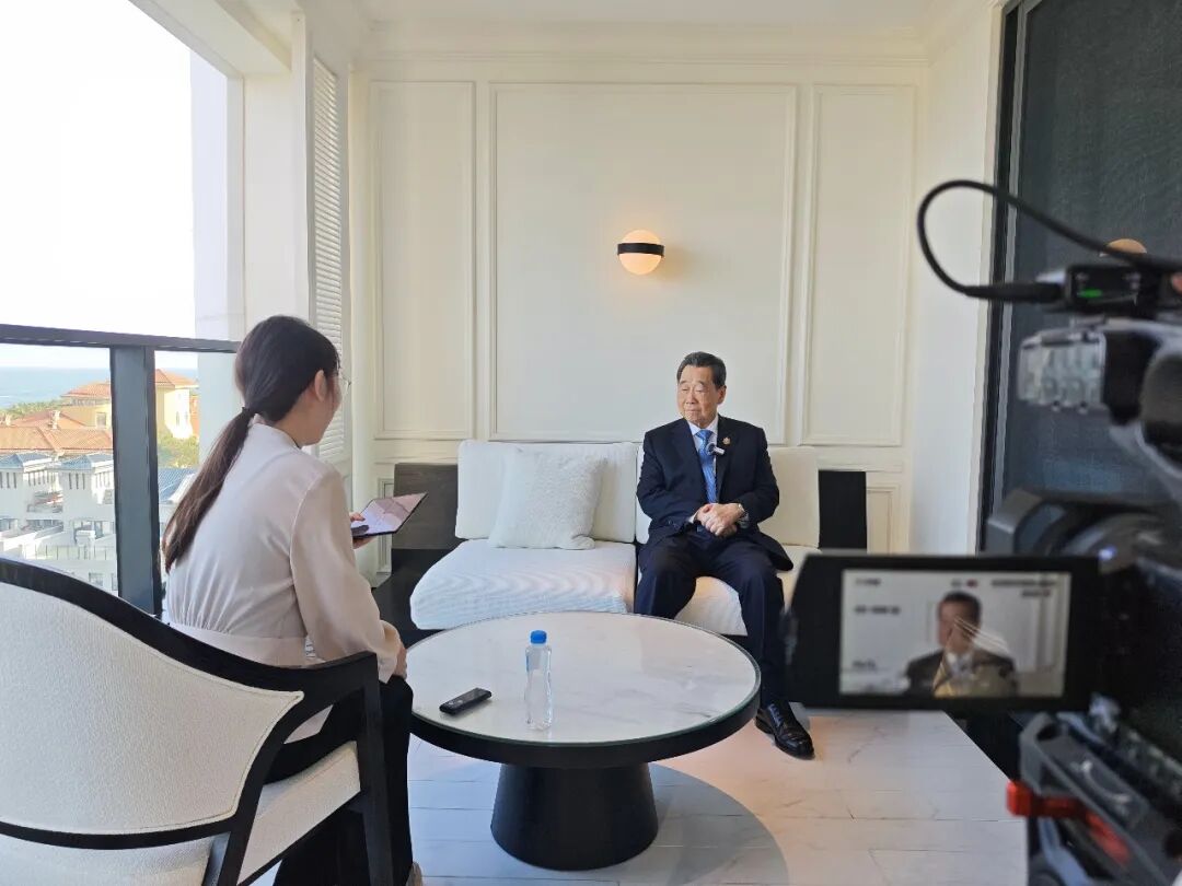 博鳌亚洲论坛2026年年会期间,泰国正大集团资深董事长谢国民接受中国侨网记者采访。林士杰 摄