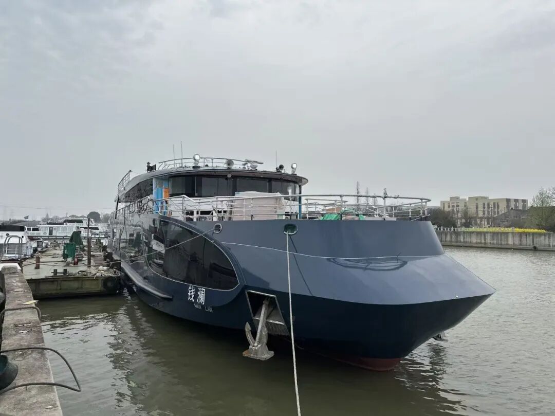 近日,江苏省内自主设计建造的新型双层新能源客船“钱澜”号在宜兴兴隆船厂顺利下水,标志着江苏船企在内河船舶绿色低碳转型和新能源船舶制造领域取得突破性进展。