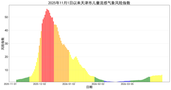 图2 2025年11月以来天津市儿童流感气象风险指数变化趋势