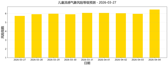 图1 2026年3月27日至4月4日天津市儿童流感气象风险指数预测趋势