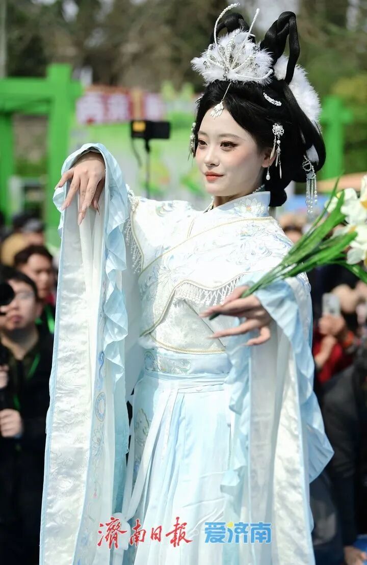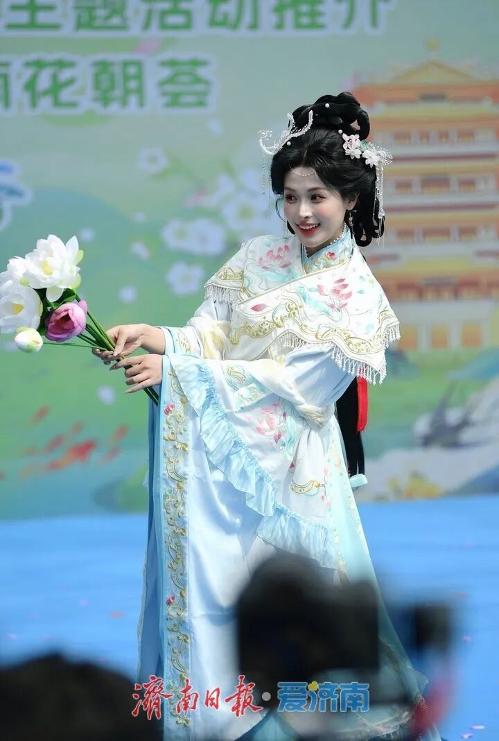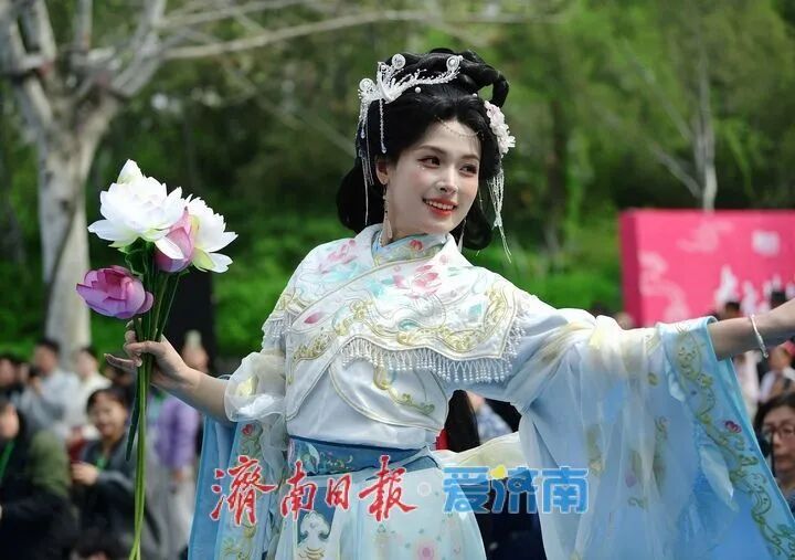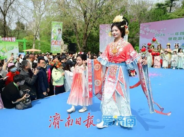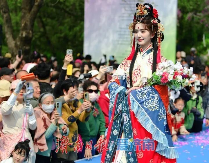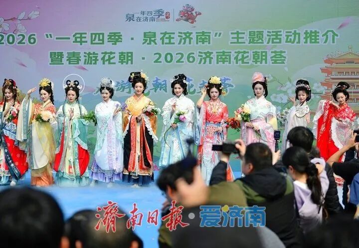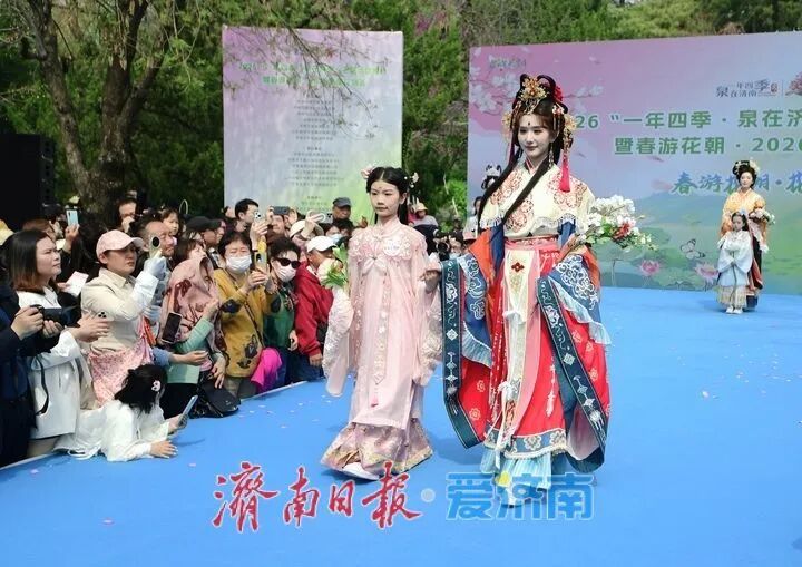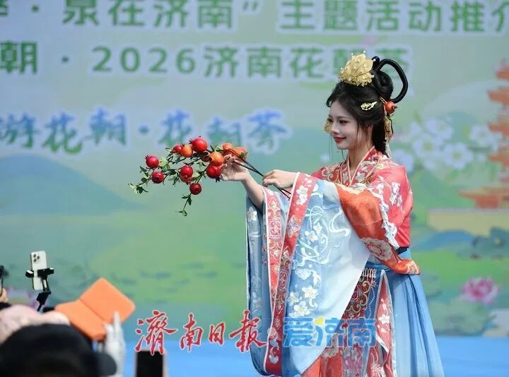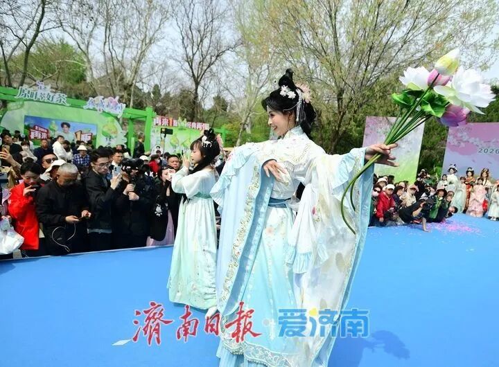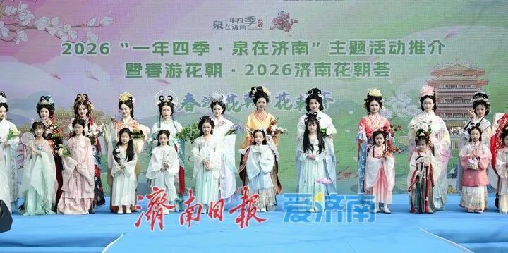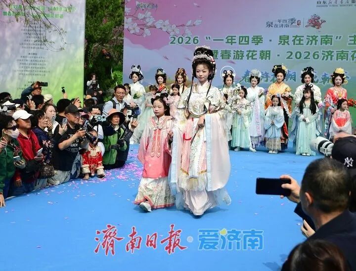 3月28日,2026“一年四季·泉在济南”主题活动推介暨“春游花朝·2026济南花朝荟”在大明湖畔盛大启幕。作为“一年四季·泉在济南”品牌的重要组成部分,本次活动以大明湖为主会场,联动趵突泉、五龙潭、百花公园、济南植物园及各区县赏花点等多个分会场,精心推出花神巡游、国风市集、国风文艺汇演等一系列主题鲜明的文化活动。通过沉浸式汉服场景的打造,游客仿佛穿越时空,亲身体验古代花朝节的繁华与雅致。