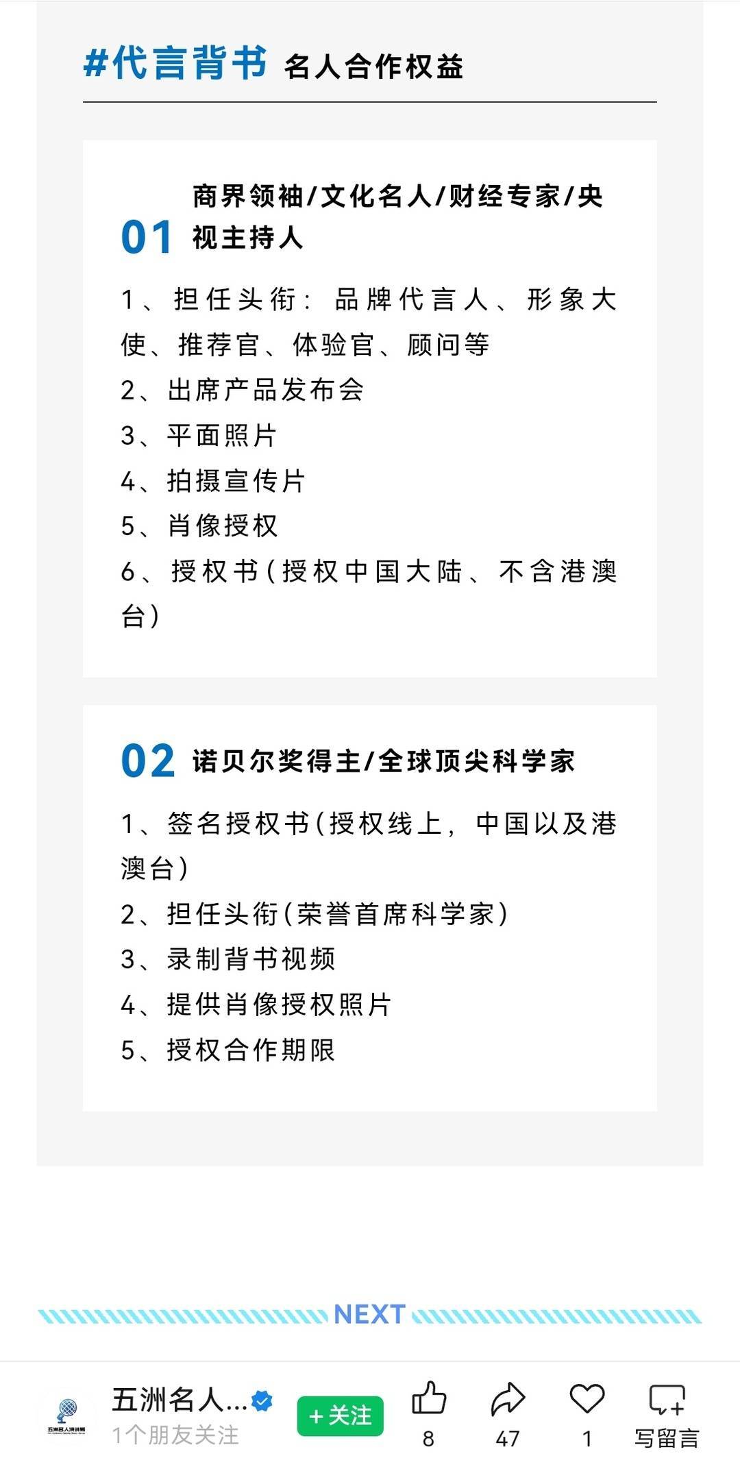 23日,相关报道刊发后,黄总微信上告知记者:我们接到通知,暂停“诺奖代言”类型业务,只接受演讲或者出席活动的合作。
