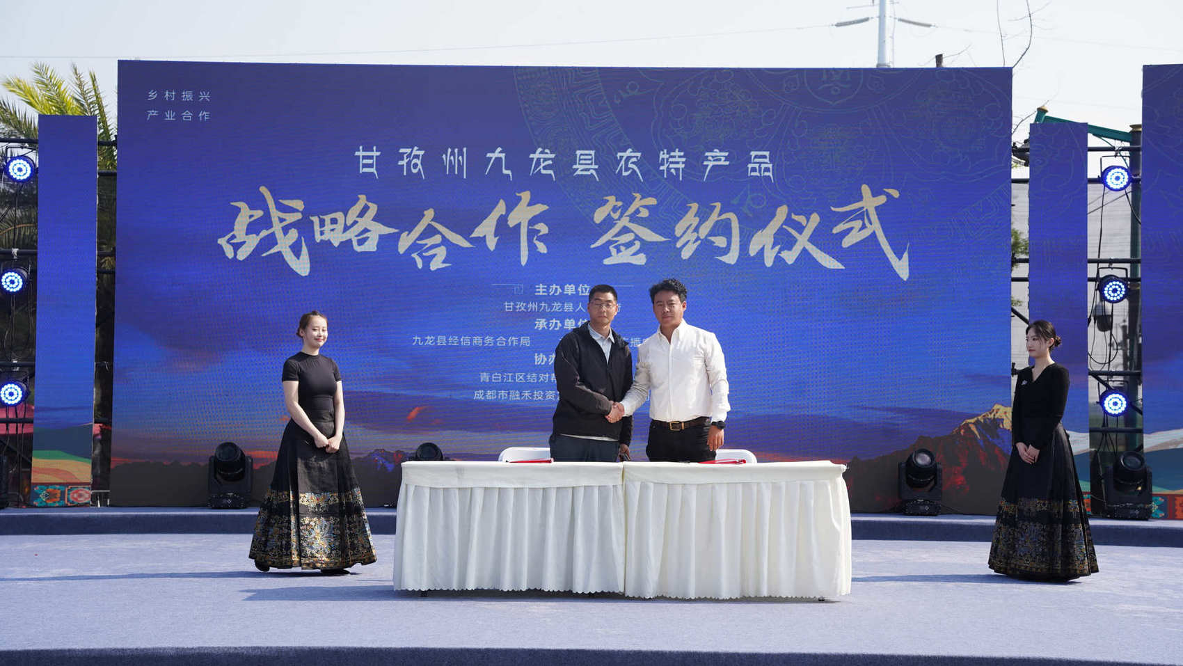 产销对接还有更多成果落地。当天,在凤凰湖旅游景区举行的甘孜州九龙县特色产业与文旅推介暨招商引资会上,青白江区文化创意产业发展协会与九龙县经济信息和商务合作局签署文创产业合作协议,双方将聚焦资源整合、文创产品全链条合作、人才共育、数字化建设、品牌孵化等领域展开深入合作,共同打造“九龙秘境”“民族手作”等特色文创品牌,构建从设计、研发、生产到销售的全链条合作模式,推动两地文创资源互补、协同创新。同时,两地还将共同打造区域公共品牌,探索“非遗工坊+数字展厅”等新消费场景,推动九龙县文化资源走向广阔市场。