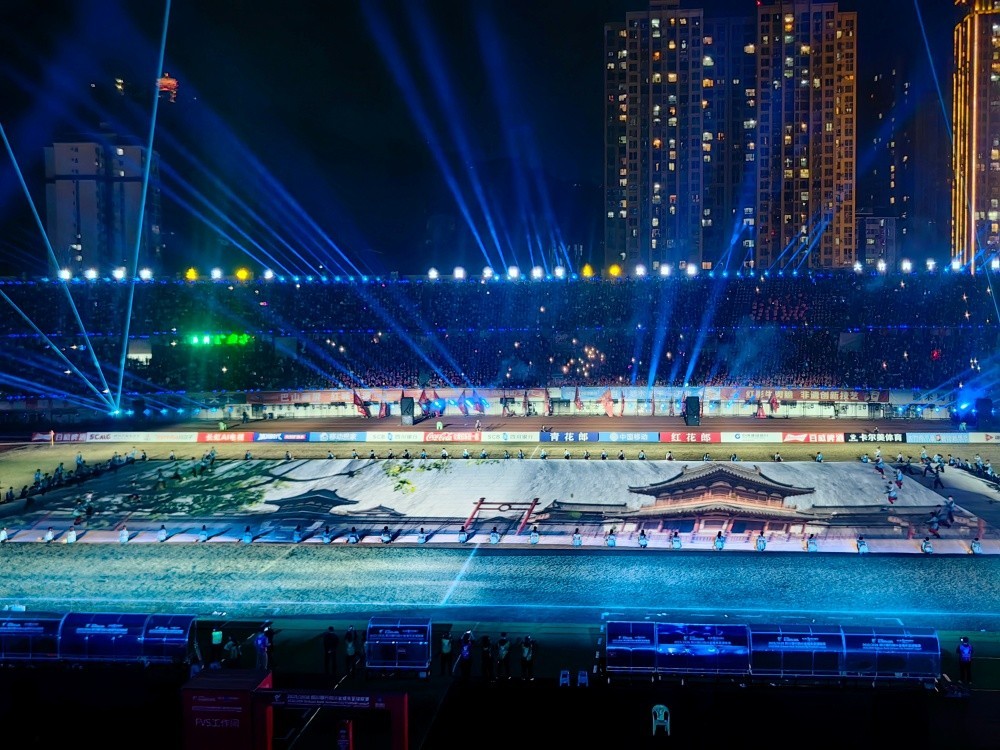 本次展演以“情怀入心、科技入幻、丰景入画、沉浸入味”为核心叙事脉络,打破了往届赛事主场仅设赛前表演、中场仅安排啦啦操的常规模式,打造了赛前暖场、中场演绎全流程的文艺呈现体系。