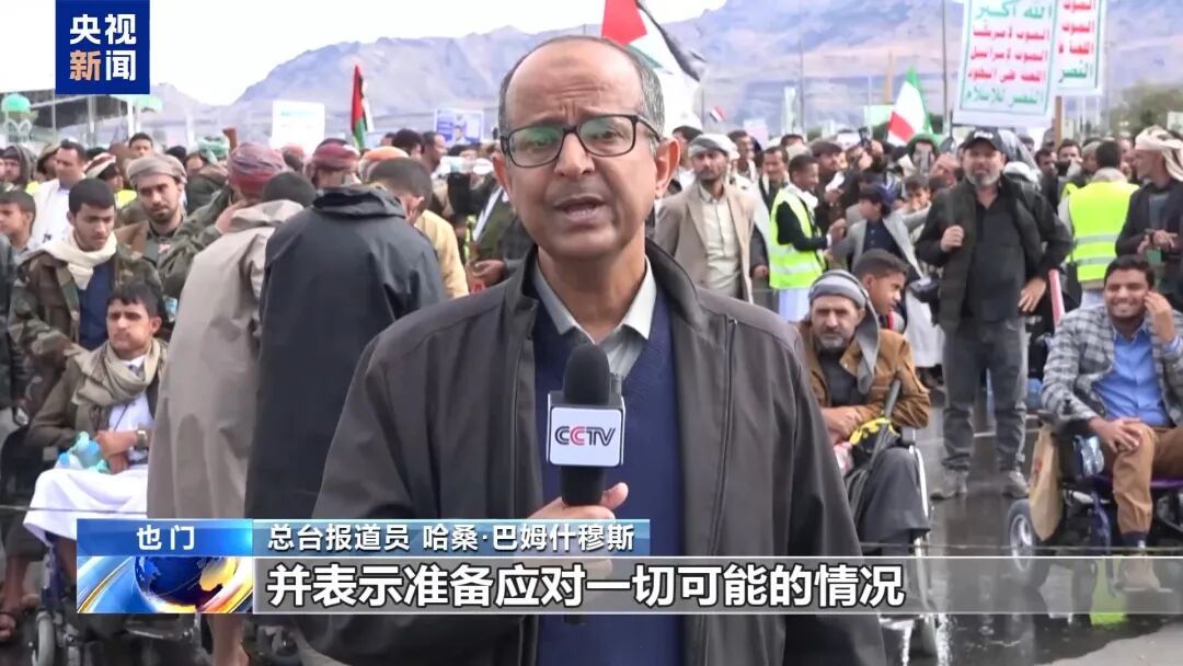 总台报道员 哈桑·巴姆什穆斯:在也门首都萨那七十广场举行的这场大规模集会上,胡塞武装对正在与美国和以色列进行战争的伊朗表示声援,并表示准备应对一切可能的情况。当前冲突也已进入对地区乃至全球更加危险的新阶段。