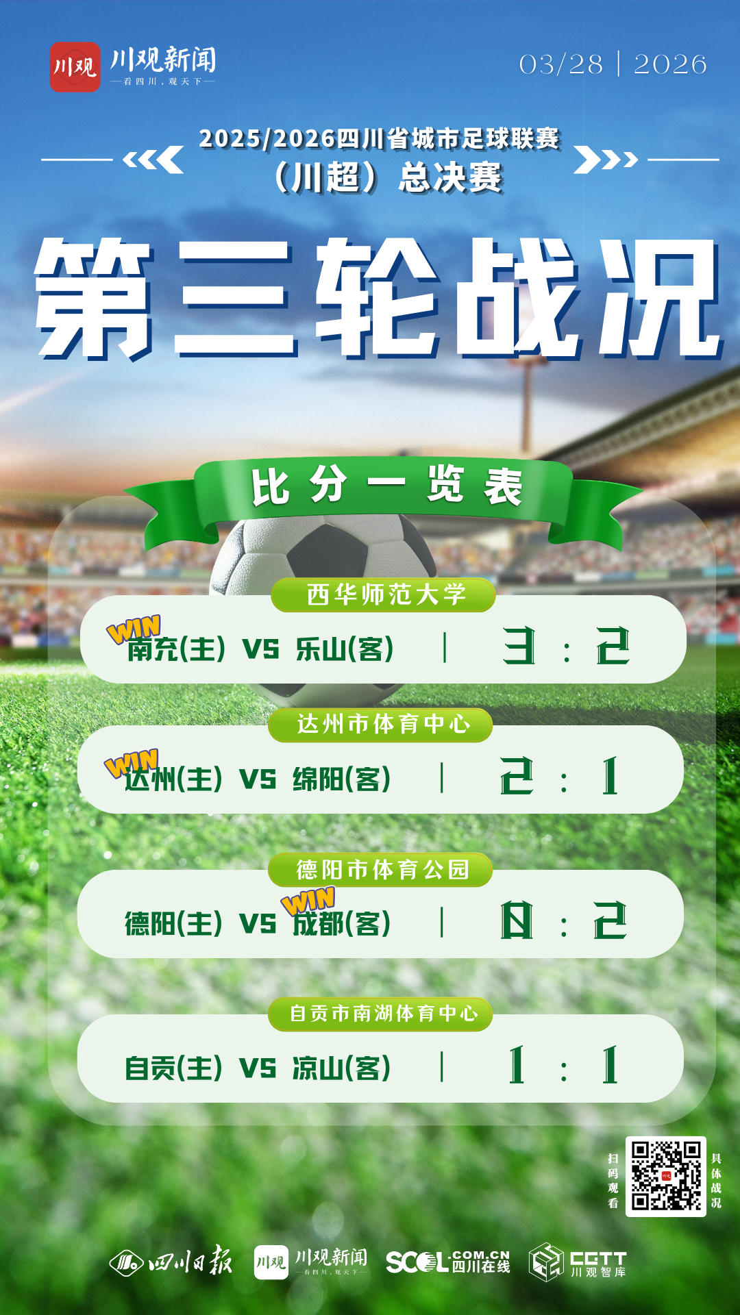 3月28日,2025/2026四川省城市足球联赛(简称“川超”)决赛阶段第三轮比赛全面打响。