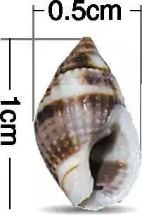 织纹螺的外形特征为尾部较尖、细长,长度约为1厘米,宽度约为0.5厘米,约指甲盖大小。另外,其壳面常具有1到3条紫褐色或红黄色螺带,表面图案看起来就像织布,螺口处呈白色。