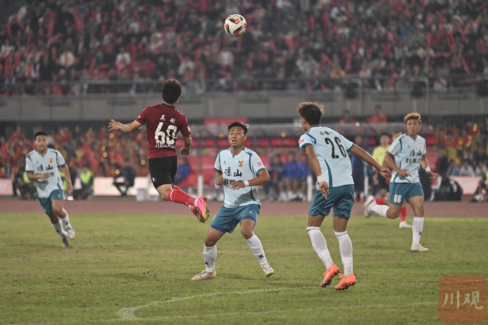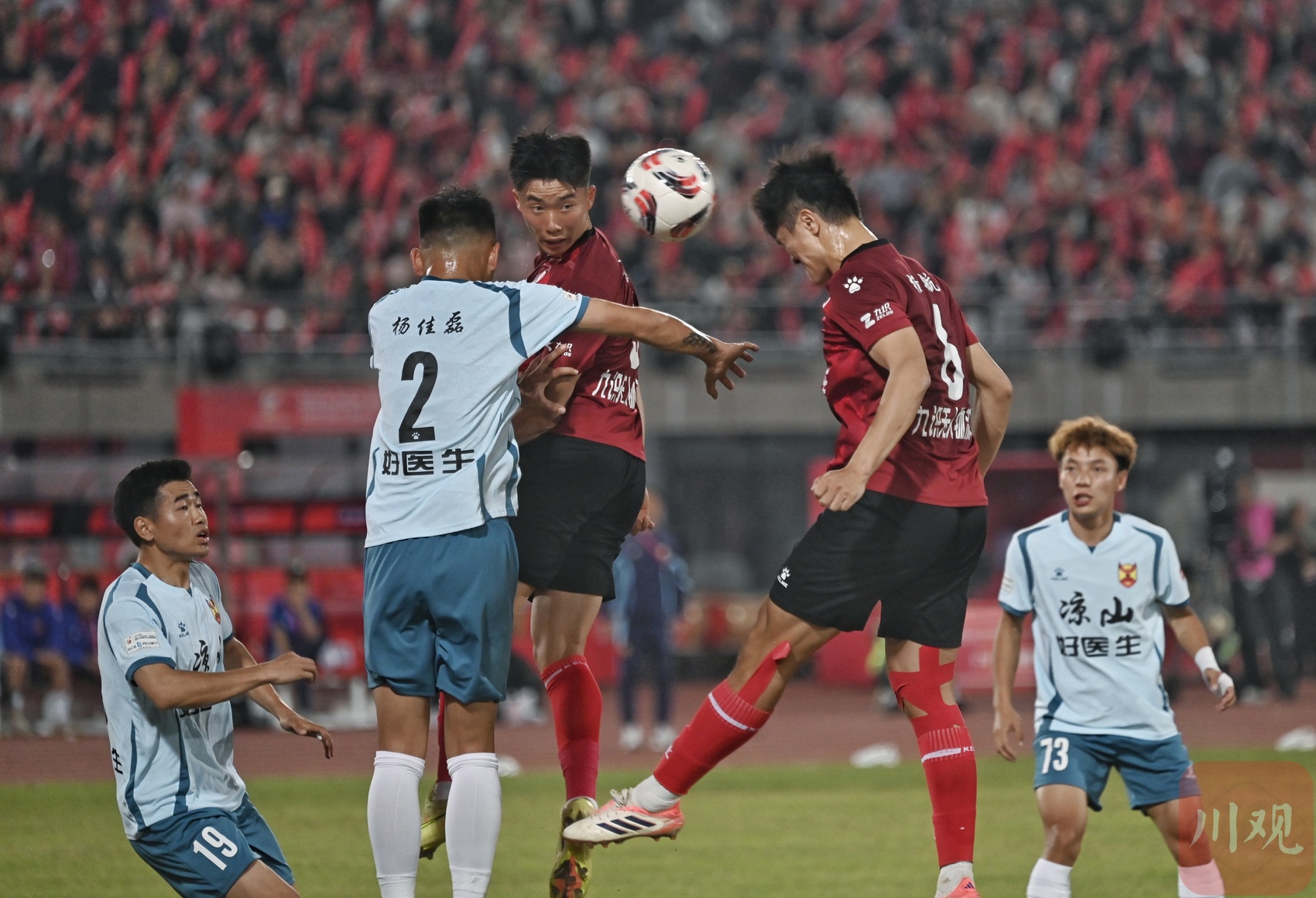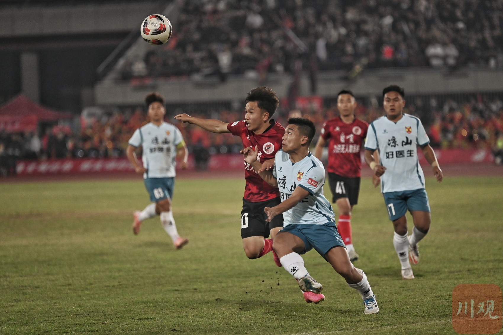 自贡队(红衣)与凉山队(白衣)在比赛中。