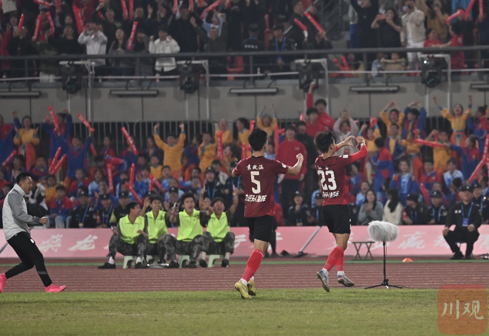 自贡队进球后球迷欢呼。