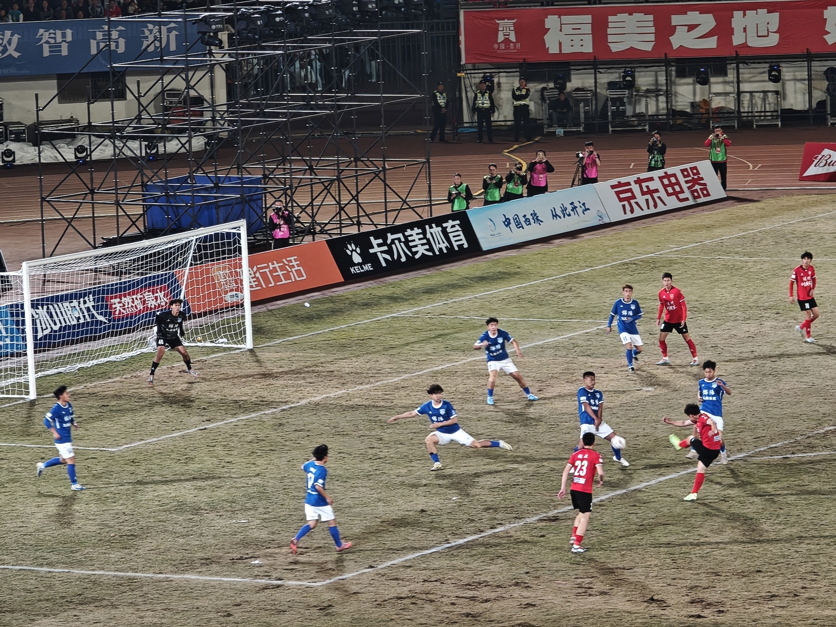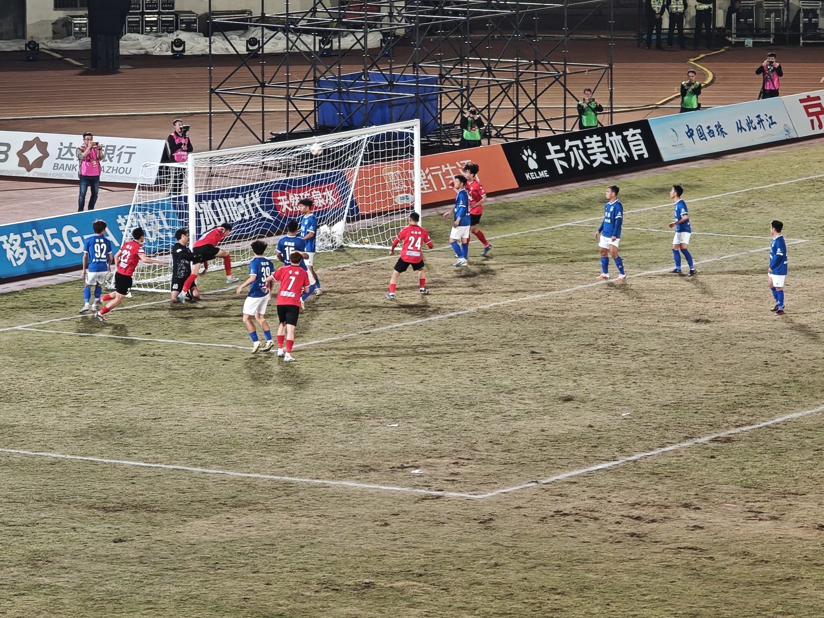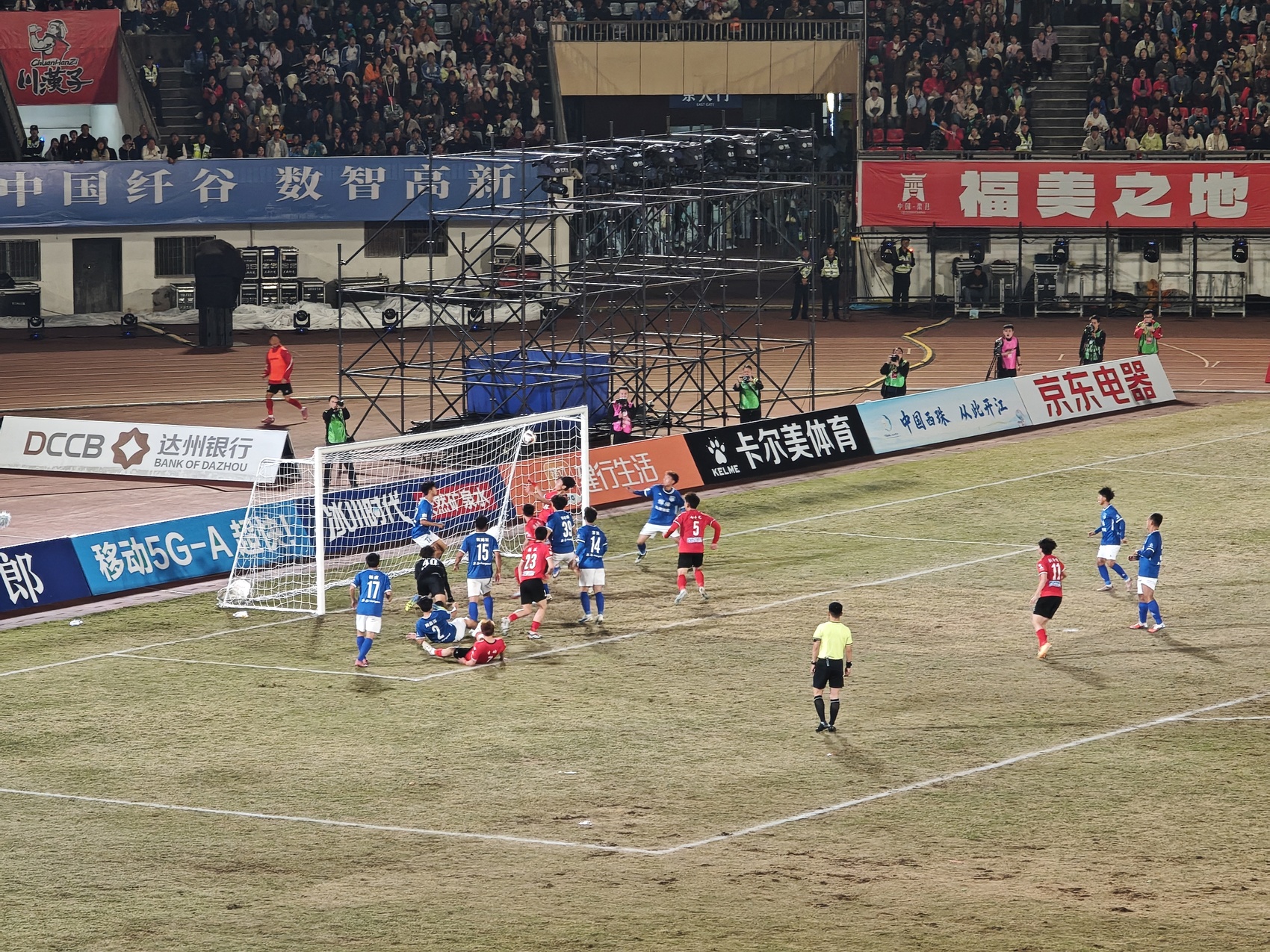 此后,两队展开激烈攻防拉锯,达州队持续冲击对方防线。比赛第84分钟,达州队再次凭借定位球机会,80号球员冯禹豪头球破门,将比分改写为2:1,实现逆转反超。