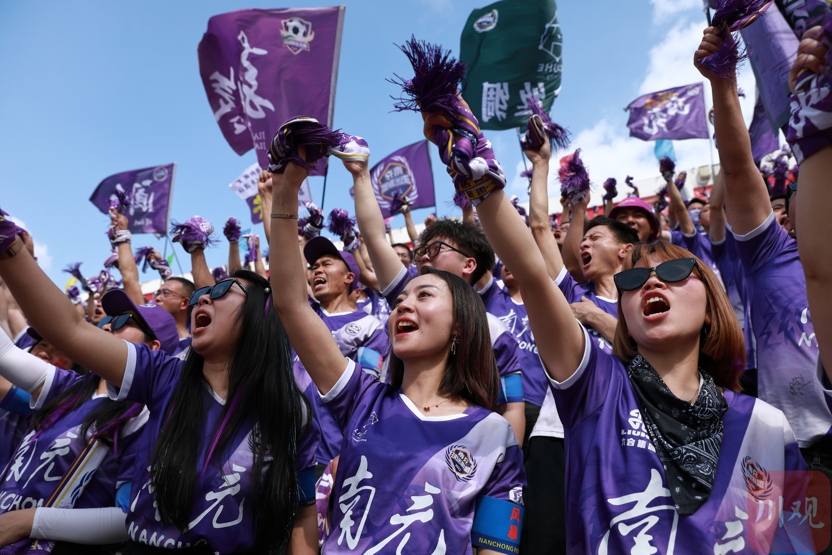 南充队球迷在看台上激情助威。C视觉签约摄影师 蒋东平
