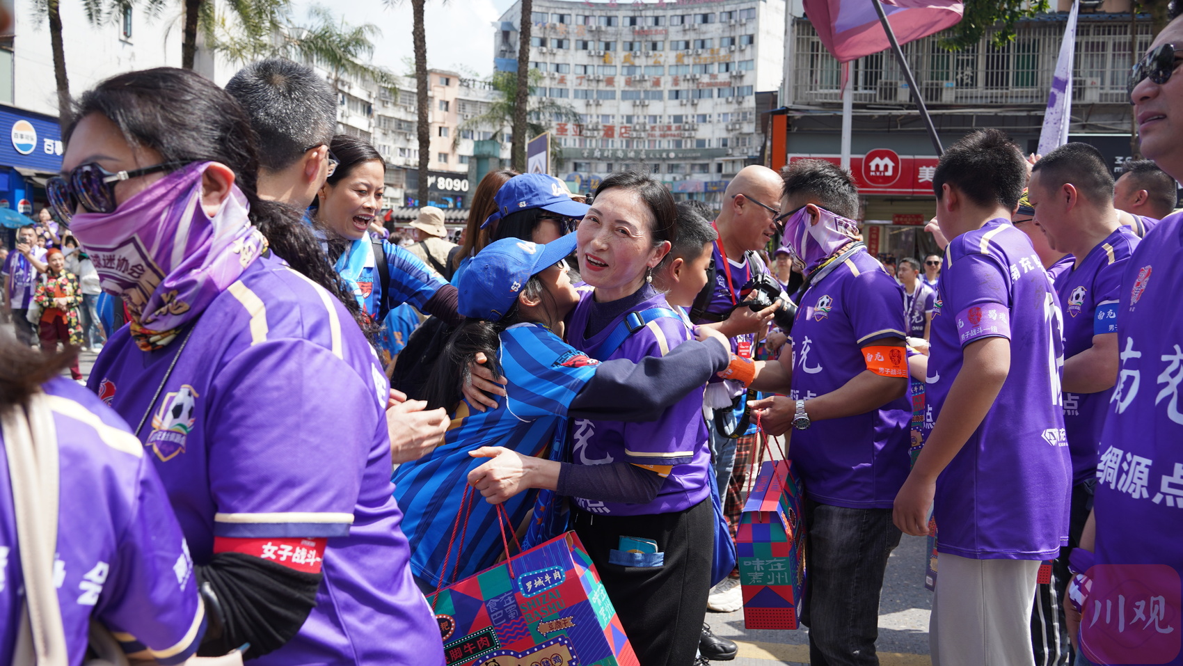 南充与乐山队比赛赛前,两队球迷温情相拥。C视觉签约摄影师 张龙