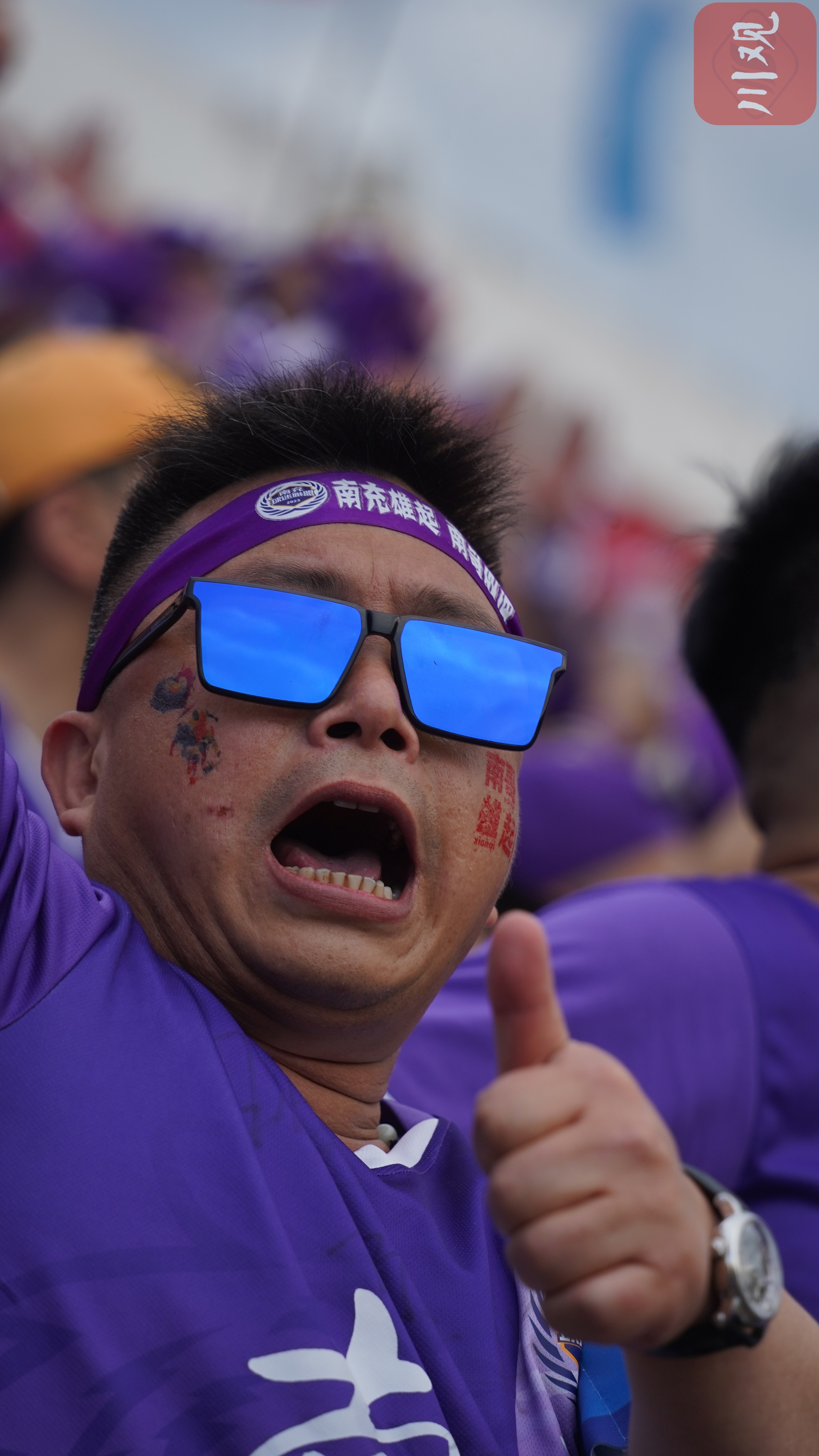 南充丝绸源点队主场迎战乐山味道非常队,球迷在脸上画上了“南哥雄起”的字样为南充队加油。C视觉签约摄影师 张龙