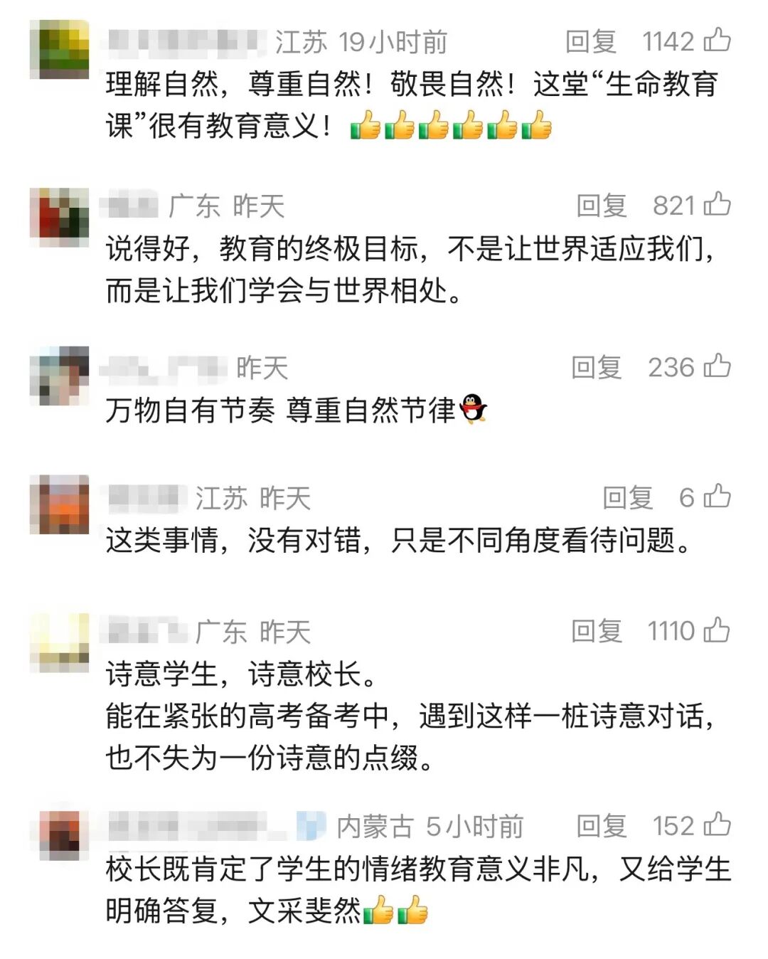 很多网友为这位校长点赞:“这堂‘生命教育课’很有意义!”