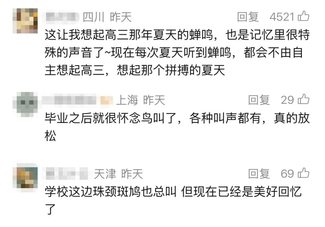 还有网友回忆起自己上学时窗外的虫鸣鸟叫,感觉十分美好;