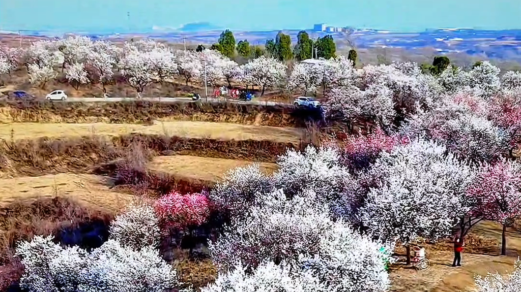 内丘县杜家台村,漫山杏花相继绽放,粉白花瓣随风摇曳,吸引众多游客前来观赏游玩。详情→