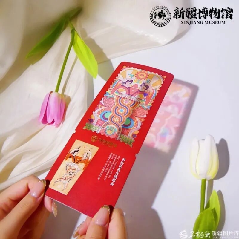 最让人挪不开眼的,是那张复刻“五星出东方利中国”锦护臂的票根。光一打,汉代织锦上繁复的星宿纹和八个大字清晰浮现,仿佛能触摸到先民们滚烫的家国祈愿。五羊纹彩陶壶纪念票则透着一股草原的生气。作为新疆首次发现的动物纹饰彩陶,透光看去,壶身上那五只羊憨态可掬,像是踩着青草地在撒欢。古人把对丰饶的向往画在了陶罐上,现在,这份祝福被“搬”到了人们手心上。还有那幅彩绘伏羲女娲绢画,平日里看照片总觉得隔着一层,可一旦透光,伏羲手里的“矩”和女娲手里的“规”线条立刻灵动起来。那一刻给人的感觉,不是在“看”文物,倒像是在和千年前的画匠共享同一束光,听他用画笔讲天地的故事。