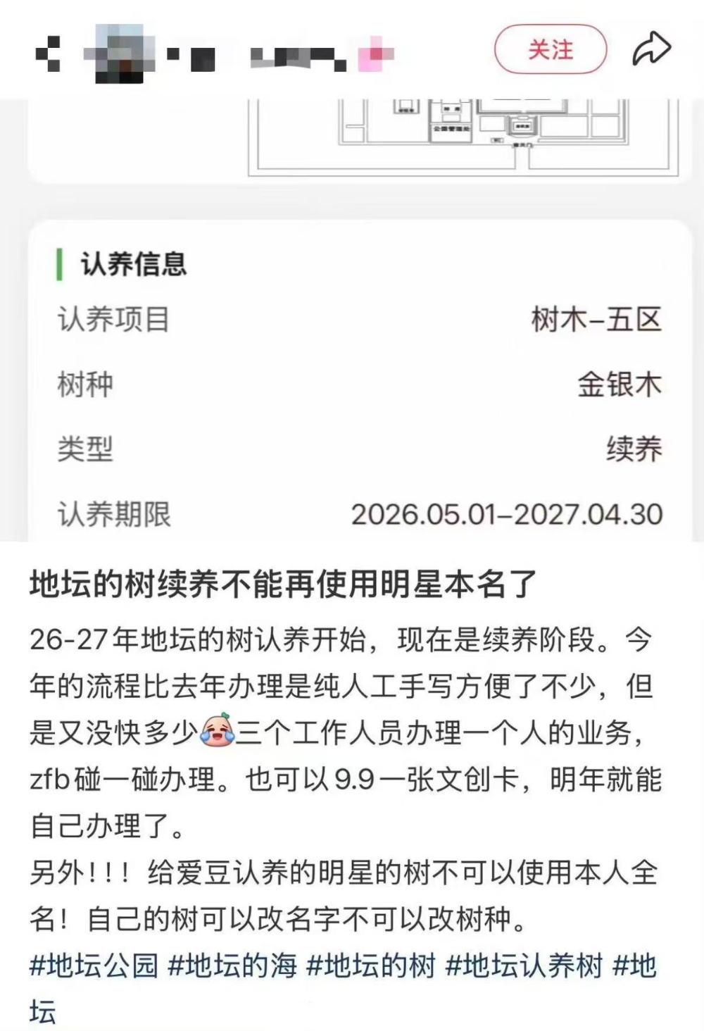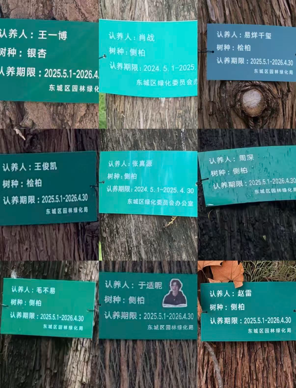 近日,有网友反映,北京地坛公园树木认养时不能再使用明星姓名。