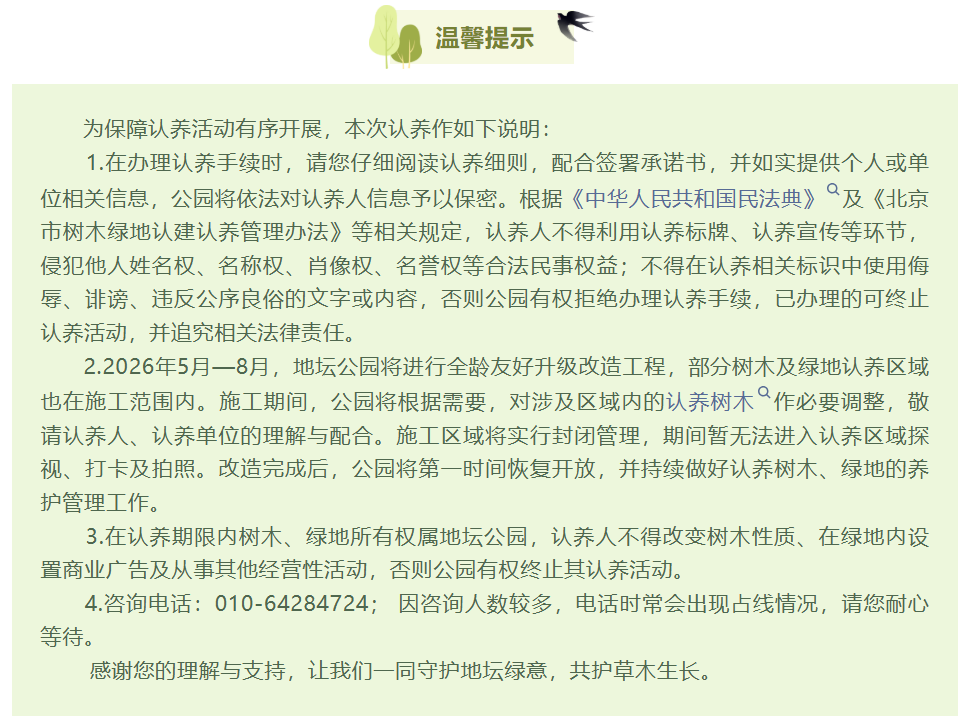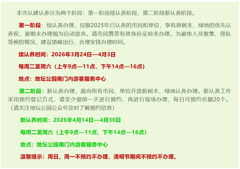 今年是地坛公园认建认养活动第19年,具体安排如下: