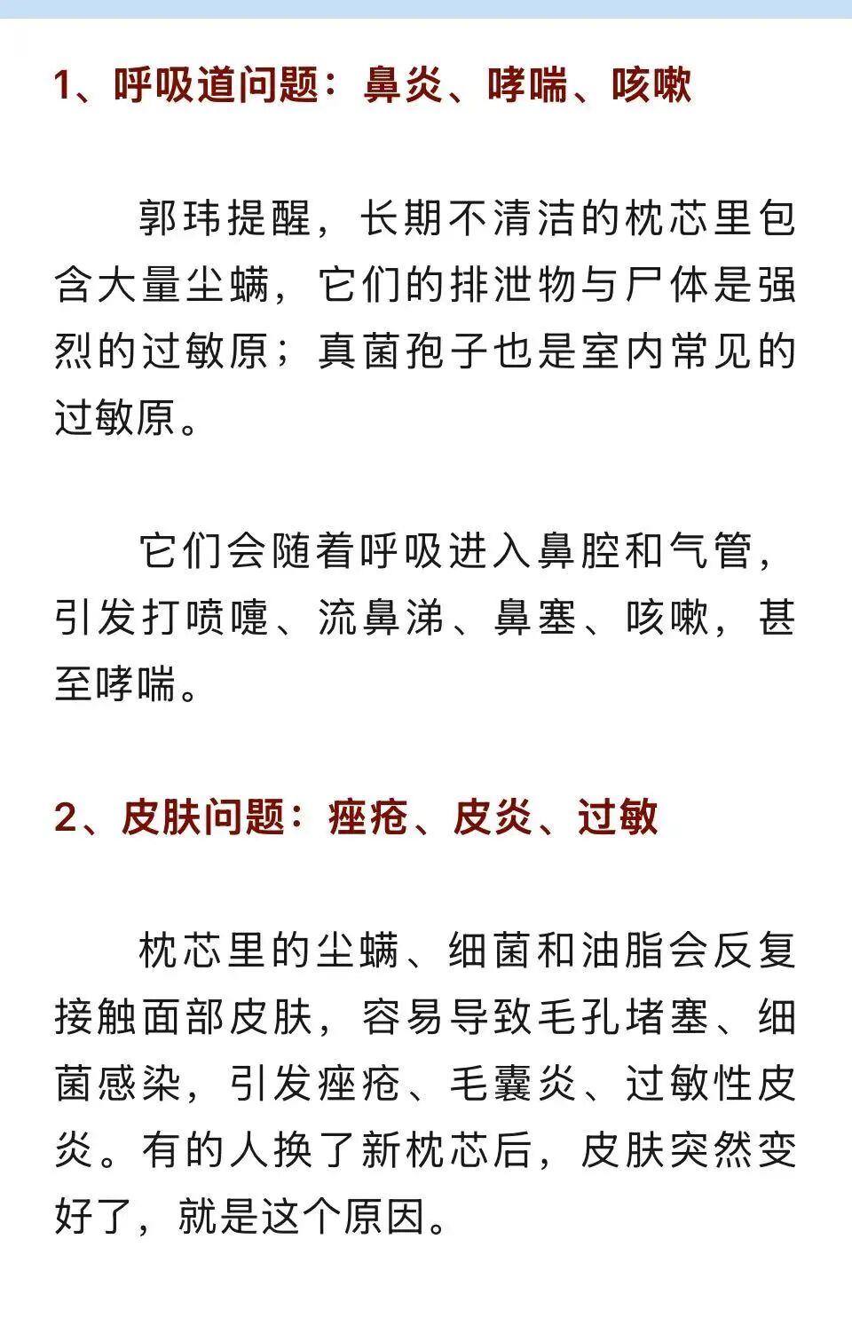 枕芯不清洁,伤害一连串