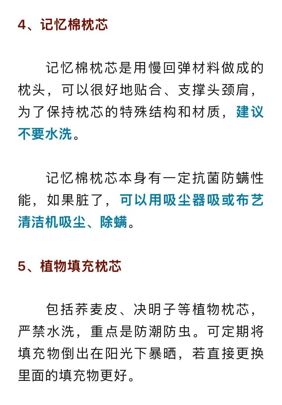 不同材质的枕芯如何清洁?