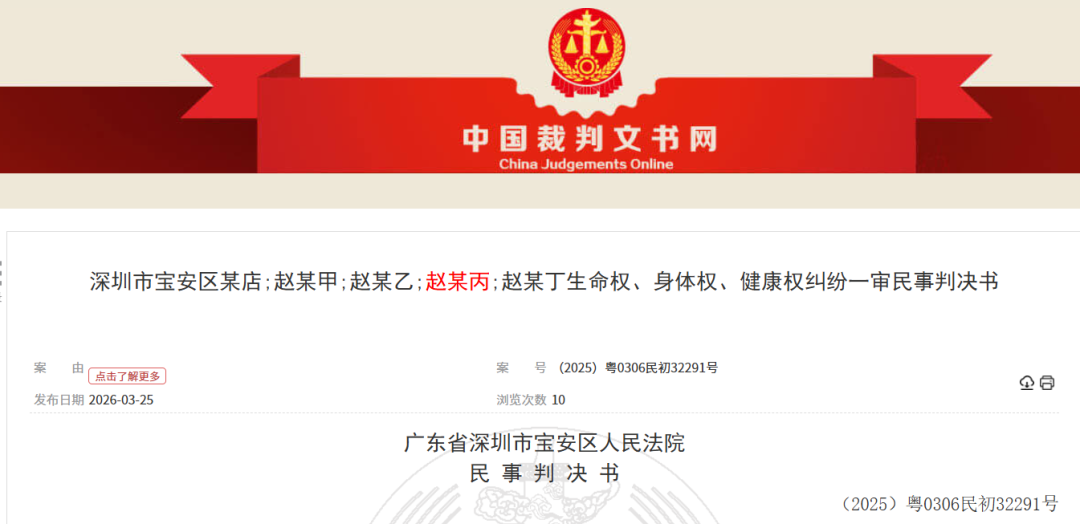 据中国裁判文书网,3月25日,广东深圳市宝安区人民法院公布一审判决书。