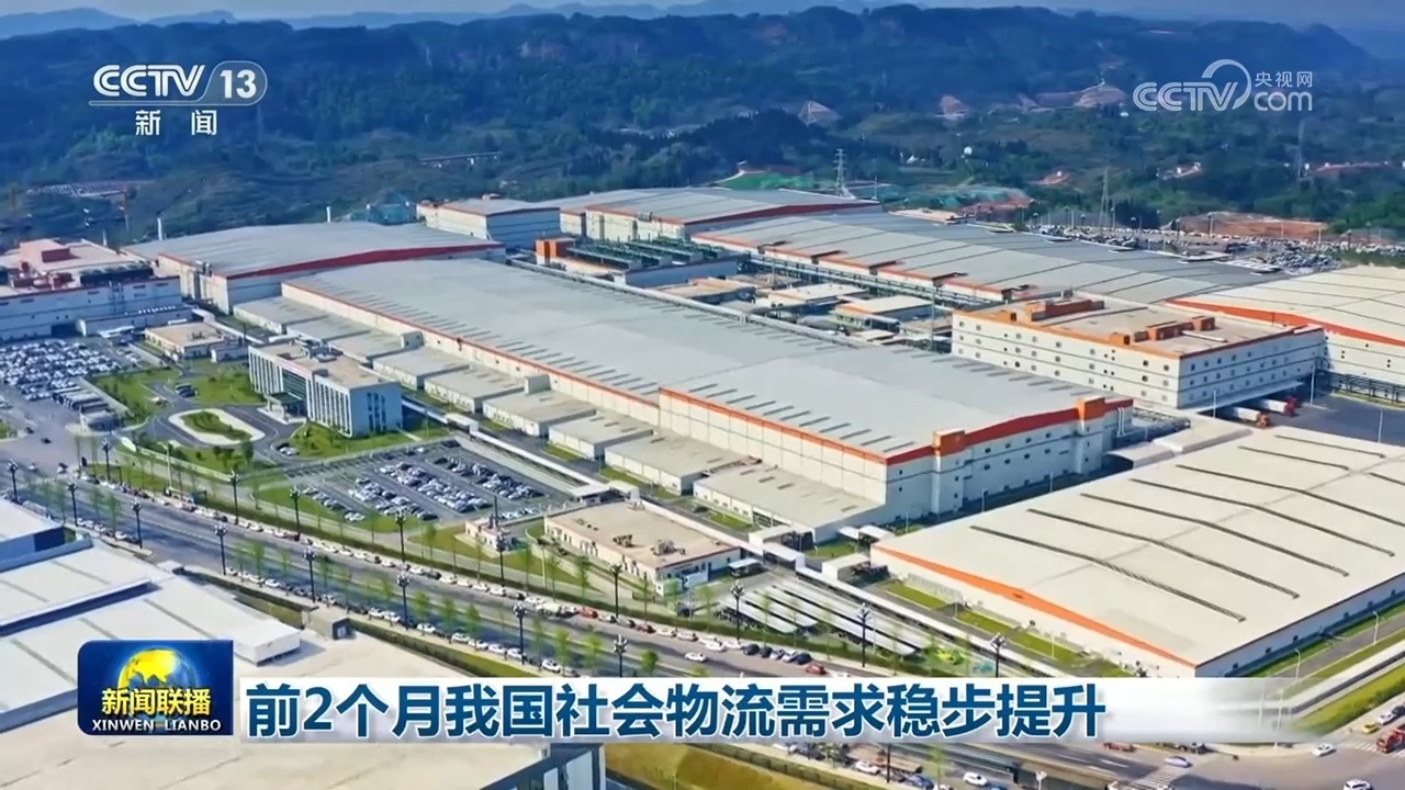 央视网消息(新闻联播):中国物流与采购联合会公布的数据显示,1—2月份我国社会物流总额58.6万亿元,同比增长6.7%,增速较上年全年、上年同期分别提高1.6和1.4个百分点。1—2月份工业品物流总额同比增长6.3%,其中,计算机、通信和其他电子设备制造业、铁路船舶航空航天等高端装备制造领域增速均超过10%。