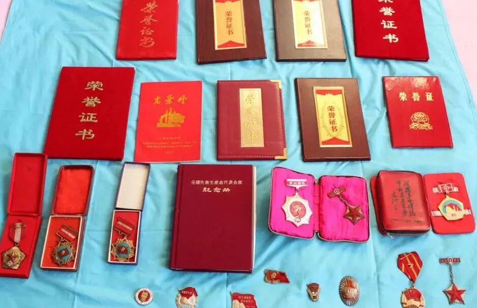胡金玲获得的荣誉证书和奖章。