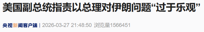 央视记者当地时间27日获悉,美国副总统万斯在本周早些时候的一次电话通话中“批评以色列总理内塔尼亚胡对本次美以伊冲突的预测过于乐观”,认为内塔尼亚胡“夸大了伊朗政权更迭的可能性”。