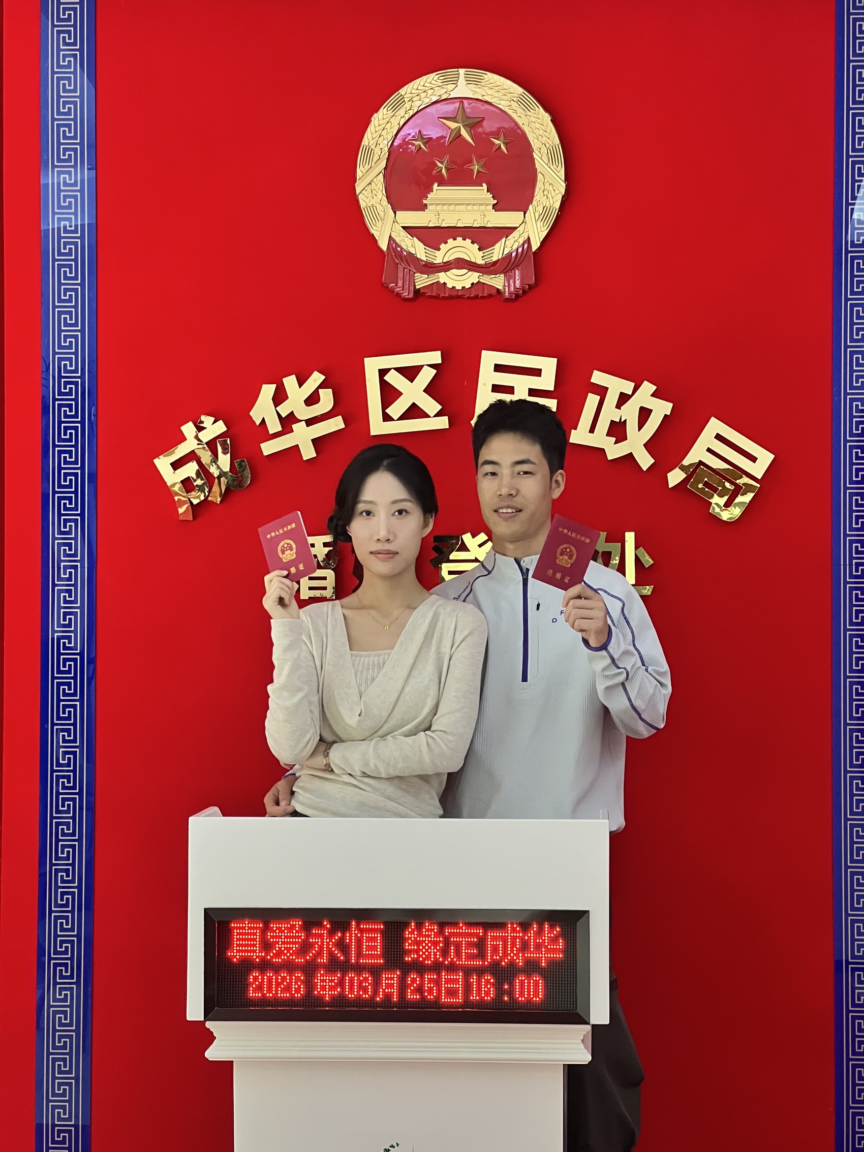袁鹏举与周亚丽在成都领证。图片由受访者提供