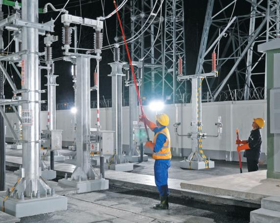 3月26日22时36分,西十高铁陕西段油龙、葛条两座牵引变电所馈线断路器合闸成功,沿线接触网分相关节验电成功。这标志着西十高铁陕西段全线接触网送电顺利完成。图为工作人员在进行馈线断路器合闸操作。