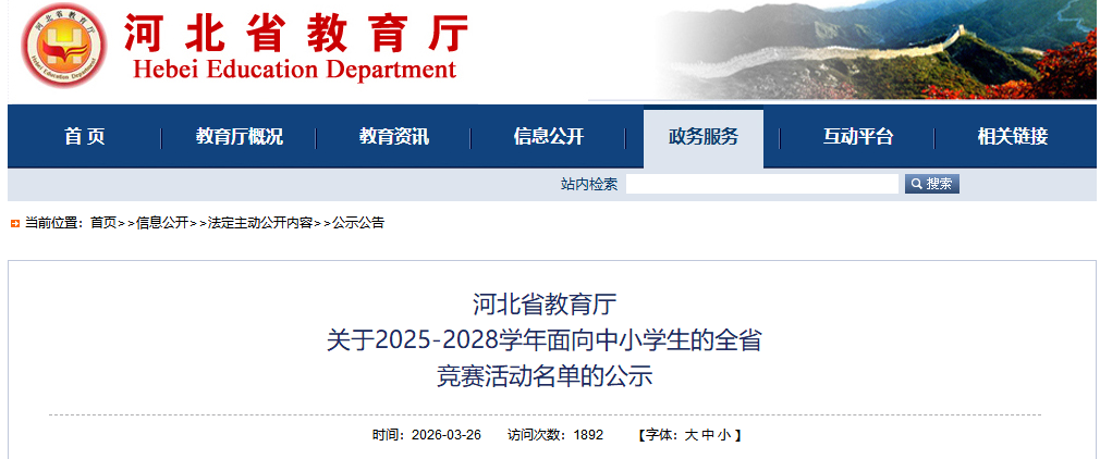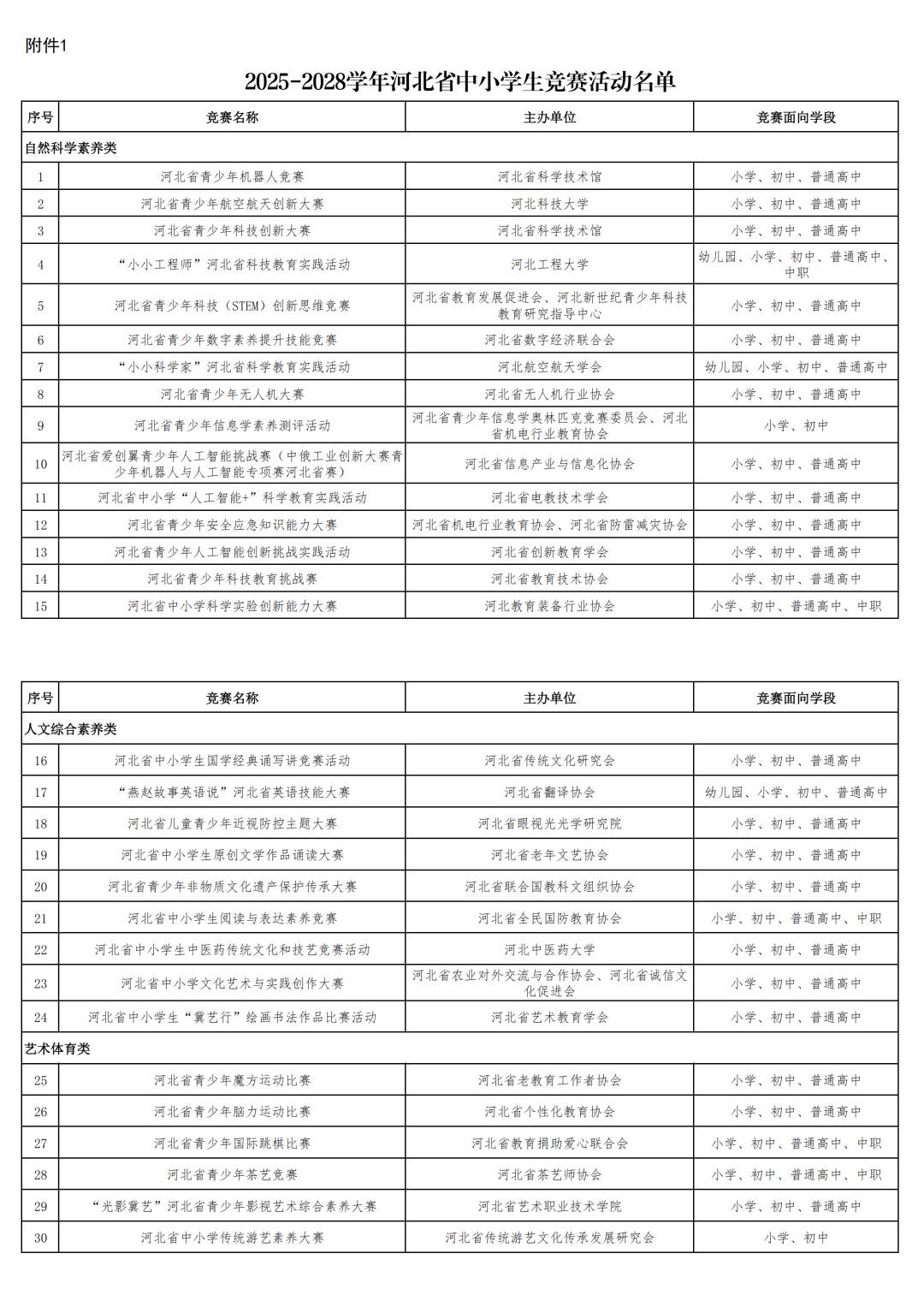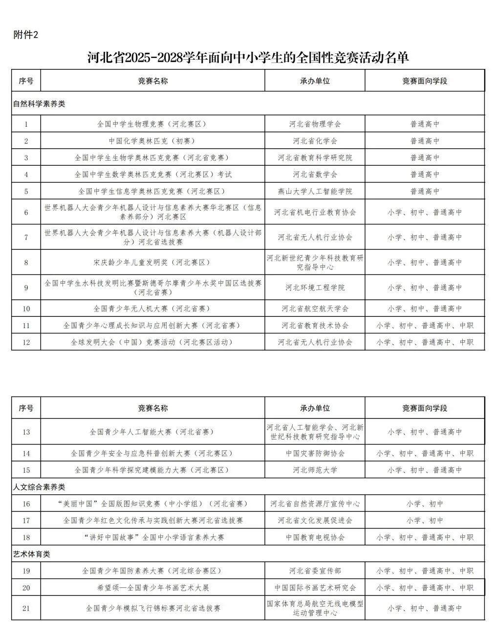 河北省教育厅布最新发布关于2025-2028学年面向中小学生的全省竞赛活动名单的公示↓↓↓