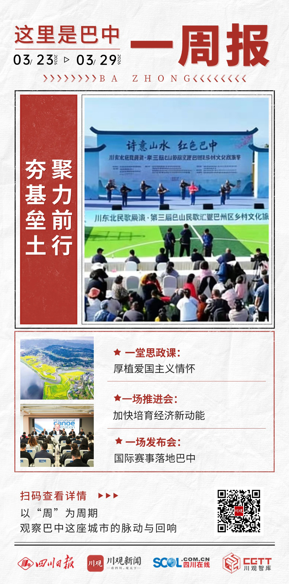 3月23日至29日,又一周过去。这一周,巴中紧扣高质量发展这一大主题,在这片红色沃土上,在不同领域里努力夯基垒土,既有纪念碑下的思政课,将爱党爱国情怀厚植在巴山学子的心里,也有今年一季度重点项目推进活动,释放出项目为王、企业家至上的鲜明信号,还有一场新闻发布会,官宣国际A类水上赛事皮划艇马拉松世界杯首次落地巴中。