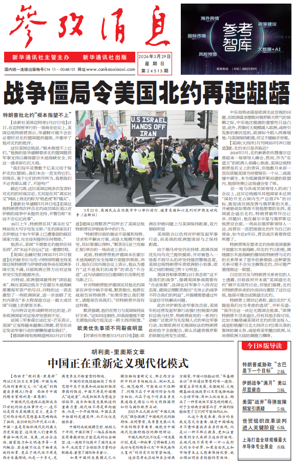 今日出版的《参考消息》数字报,五大看点不容错过。