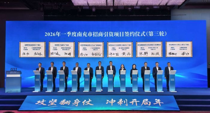 紧随其后,3月26日,南充市举行2026年一季度招商引资项目签约仪式,打响攻坚之年“第一枪”。此次集中签约15个重大项目,协议总投资131.5亿元。总的来看,一季度全市新签约项目已达116个,协议总投资330.49亿元,其中制造业项目占比高达92.2%,省级平台签约项目投产率居全省首位。