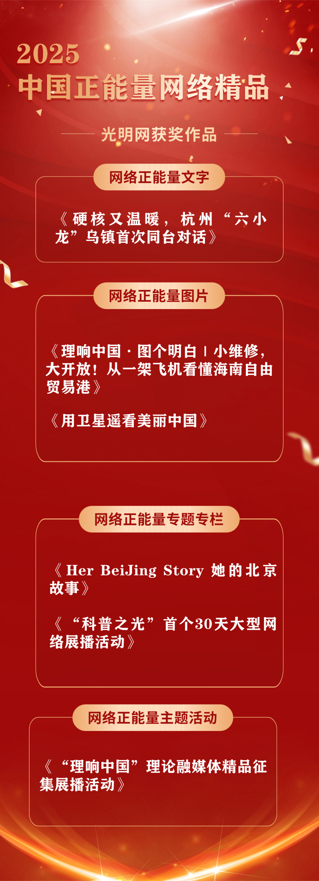 《“理响中国”理论融媒体精品征集展播活动》入选网络正能量主题活动。