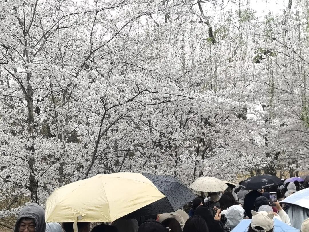 3月29日下午,玉渊潭公园里游人冒雨赏花。林晓华 摄